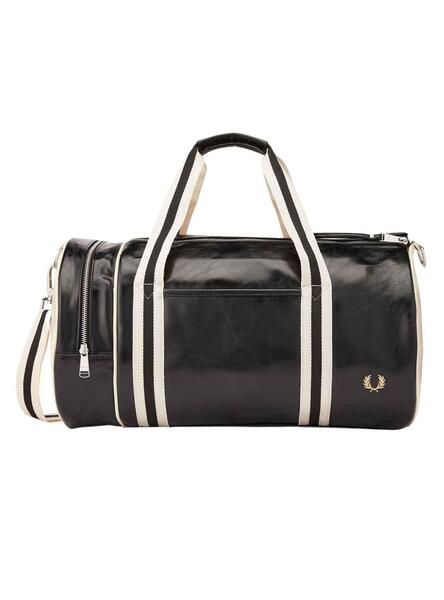 Bolso Fred Perry. Modelo Classic Barrel. Color negro. Correa ajustable. 2 asas verticales. Logo bordado. Cierre de cremallera.