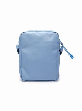 Bolso Lacoste. Modelo Vertical en azul celeste. Bandolera ligera con bolsillo exterior y cierre de cremallera. Correa ajustable. cocodrilo clasico bordado. Dimensiones: 16 x 21 x 6,5cm. Confeccionada en lona ligera.