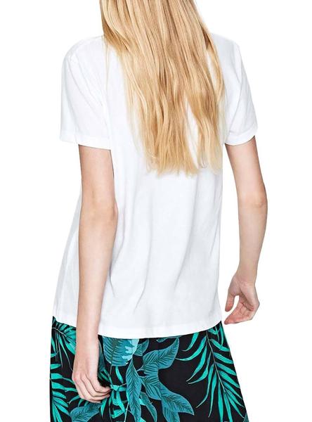 Camiseta PepeJeans. Modelo Maria. Color Blanco. Cuello redondo. Manga corta. Estilo Regular. Letras de la marca impresas en el frente con estampado floral.