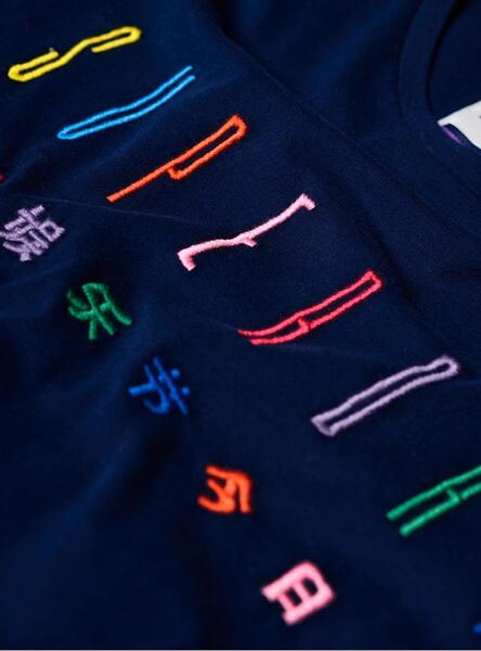 Camiseta Superdry. Modelo Paulo. Color azul. Cuello redondo. Manga corta. Logo de Superdry bordado en el pecho. Corte holgado. La modelo lleva la talla S.