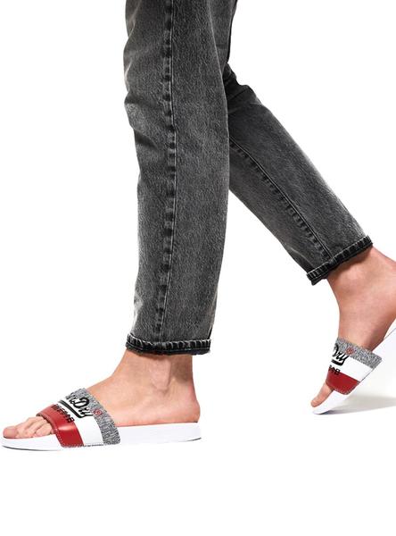Chanclas Superdry. Modelo Logo Pool. Color blanco. Tira ancha de goma. Detalle de letras y colores en la cinta. Suela anatomica para mayor comodidad.