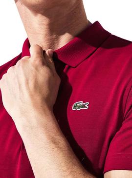 Polo Lacoste Sport. Modelo L1230. Color burdeos. Cuello con 3 botones. Tejido ultra-dry. Cocodrilo verde bordado en el pecho. Regular fit. El modelo lleva la talla 4.
