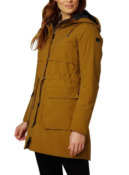 Parka Helly Hansen. Modelo Boyne. Color camel. Cierre de cremallera. Dos bolsillos laterales. Cintura ajustable. Cuello alto. Capucha ajustable. Abertura trasera. Resistente a la lluvia y al frio.