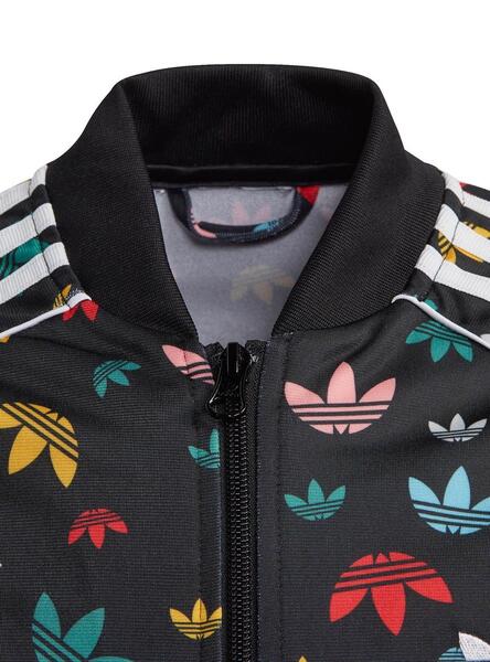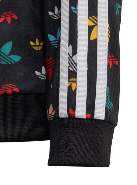 Sudadera Adidas. Modelo Multilogo. Color negro. Cierre con cremallera. Extremos elasticos. Dos bolsillos laterales. Estampado con logos multicolor. Triple banda en las mangas. Extremos acanalados. Logo bordado en el pecho.