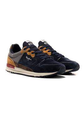 Zapatillas Pepe Jeans. Modelo Tinker. Color azul marino. Cierre con cordones. Suela bloque extralight. Piezas en ante marron. Logo estampado en plateado.