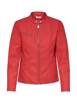 Cazadora Only. Modelo Melanie. Color rojo. Cierre con cremallera. Estilo biker. Cuello con boton automatico. Bolsillo en el pecho con cremallera. Dos bolsillos laterales.
