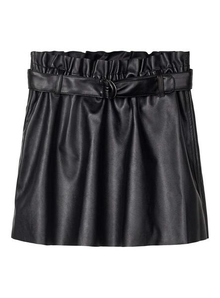 Falda Name It. Modelo Lorena. Color negro. Cintura ajustable con cinturón. Largo por encima de la rodilla.