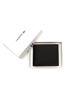 Cartera Lacoste. Modelo Classic. Color negro. 3 ranuras para tarjetas. Incluye monedero. Compartimento para billetes. Dimensiones: 11,5 x 9,5 x 2,5 cm.