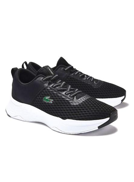 Zapatillas Lacoste. Modelo Court Drive. Color negro. Empeine de tela. Suela de goma. Cocodrilo verde bordado en el lateral. Tejido con textura 3D.
