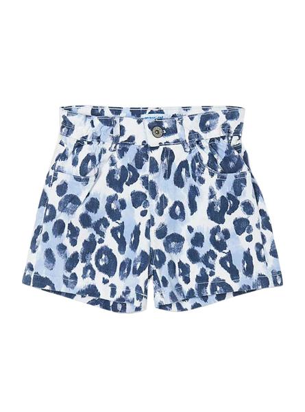 Short Mayoral. Estampado animal print. Color azul. Cierre con boton y cremallera. Bolsillos laterales y traseros. Tiro alto.