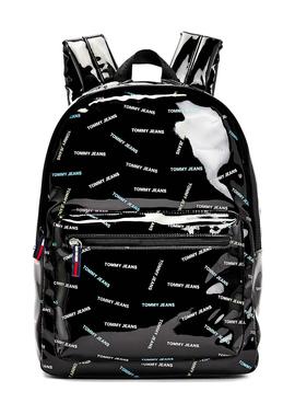 Mochila Tommy Jeans. Modelo Campus Twist. Color negro. Acabado brillante. Logos de tommy jeans. Bolsillo exterior con cremllera. Dimensiones 29 x 12 x 35 cm.