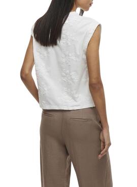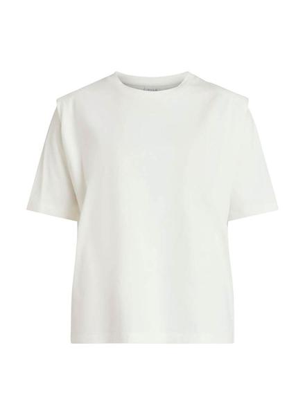 Camiseta Vila. Modelo Vishoulde. Color blanco. Hombros acolchados. Tejido elástico. Cuello redondo. El modelo lleva la talla S.