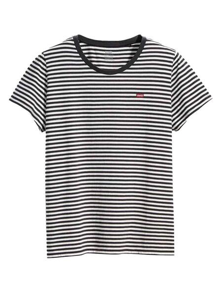 Camiseta Levis. Modelo Perfect Tee. Estampado de rayas. Color blanco y negro. Cuello redondo. Manga corta. Logo bordado en el pecho. Standard fit.