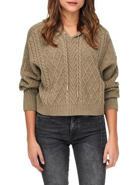 Jersey Only. Modelo Freeze. Color verde. Manga Larga. Cuello con capucha ajustable con cordones. Puños acanalados. Tejido estructurado de punto.