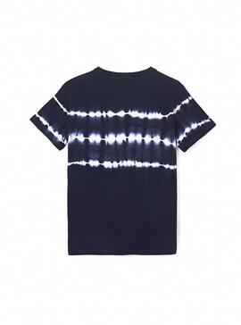 Camiseta Mayoral. Color marino. Franjas Tie Dye en color blanco. Manga corta. Cuello redondo. Bolsillo en el pecho.
