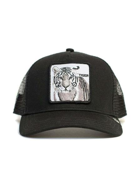 Gorra Goorin Bros. Modelo trucker. Color negro. Etiqueta cosida en la visera. Parche frontal con tigre Tiger. Cierre trasero ajustable.