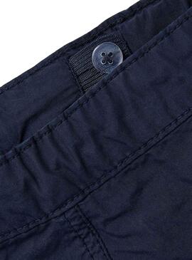 Bermuda Name It. Modelo Ryan Tilip. Color marino. Estilo cargo. Cintura elástica ajustable con cordones. Bolsillos traseros, laterales y cargo. Etiqueta cosida en el lateral.