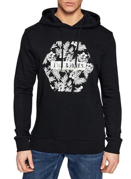 Sudadera Jack And Jones. Modelo Coastal. Color negro. Con capucha. Terminaciones acanaladas. Gráfico en el pecho.