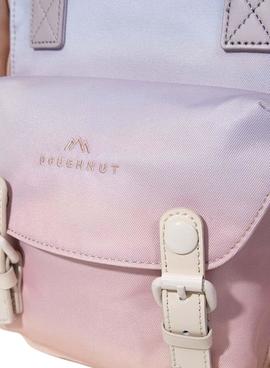 Mochila Doughnut. Modelo Macaroon Reborn Mini. Efecto degradado multicolor. Cierre con doble cremallera. Asas superiores fijas. Bolsillo frontal con hebillas y logo. Correas ajustables. Bolsillos latearles e interiores. Impermeable. Medidas 21,5x30x9cm.