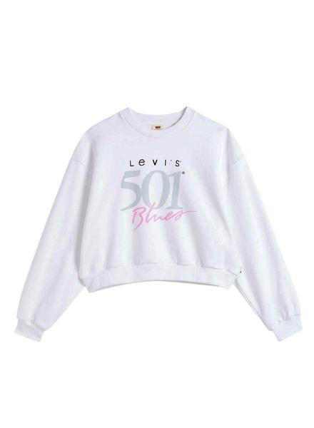 Sudadera Levis. Color blanco. Modelo Graphic Vintage 501. Estampado oversize 501 en el pecho. Terminaciones en canalé. Sin capucha. Con cuello redondo. Bajo acanalado.