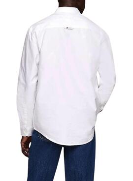 Sobrecamisa Tommy Jeans. Color verde grisáceo. Bandera pequeña en el pecho. Cierre con botones. Bandera oversize estampada en la parte trasera. Bolsillos frontales abiertos.