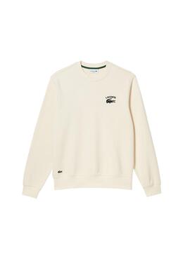 Sudadera Lacoste. Color beige. Logo y cocodrilo en el pecho. Modelo inscripción. Cocodrilo bordado en la parte delantera. Estampado de la fecha de creación de la marca en la parte trasera. Classic fit.