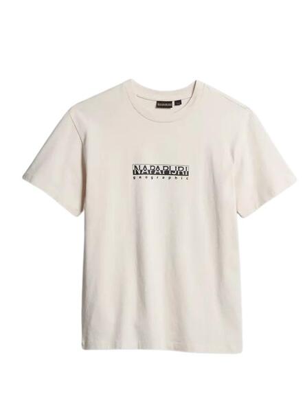 Camiseta Napapijri. Color beige. Manga corta. Modelo S Box. Cuello redondo. Logo estampado a contraste en el pecho.