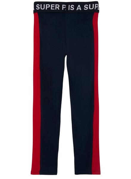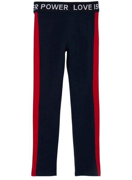 Leggings Name It. Color negro. Banda lateral roja. Banda elástica en la cintura con mensaje. Modelo Lena. Tejido elástico. Skinny fit.