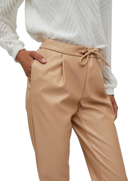 Pantalón Vila Vinille Polipiel para Mujer Camel