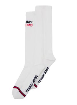Calcetines Tommy Hilfiger para hombre y mujer. Color blanco. Tejido elástico. Caña alta. Logo en el alto de la caña y en el pie. Banda a contraste en la puntera.