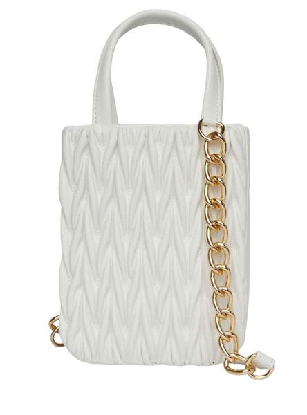 Bolso Pieces. Detalles metálicos en dorado. Modelo Abelina Daily. Color blanco. Tejido texturizado Asa de mano. Asa metálica de hombro. . Medidas: 20 x 21,5 x 6,5 cm