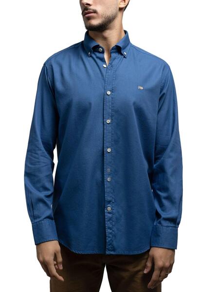 Camisa Klout para hombre. El modelo lleva la talla L y mide 1.8m. Modelo Pique Ultramar. Color marino. Cierre con botones. Botón en los puños. Cuello americano con botones. Logo bordado de Klout.