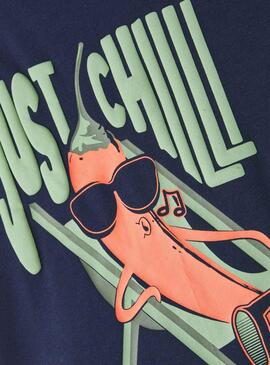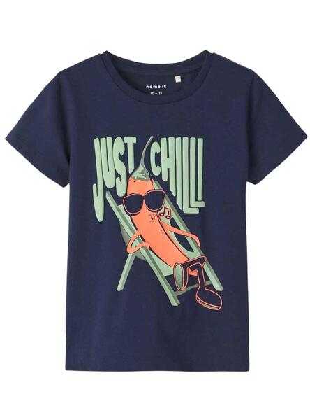 Camiseta Name It. Modelo Dean. Color marino. Cuello redondo. Manga corta. Estampado en la parte frontal. Regular fit.