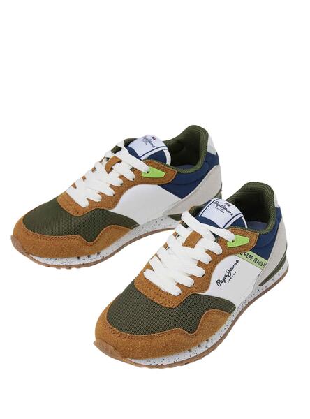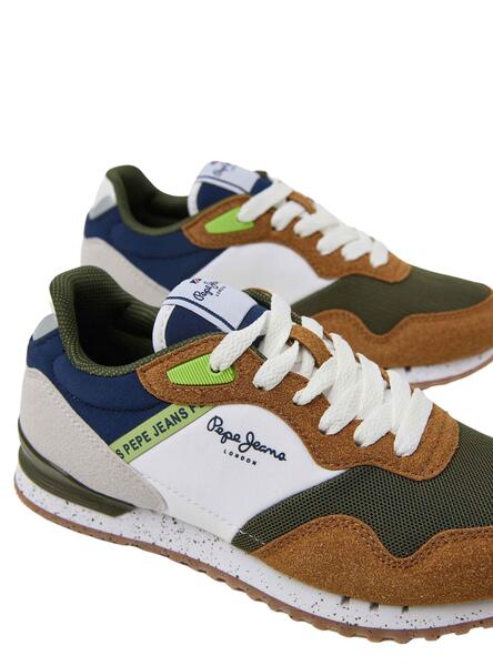 Zapatillas Pepe Jeans. Modelo London May. Color verde. Con cordones. Logo de Pepe Jeans en el lateral. Diseño en varios colores. Suela de goma con el logo de la marca.