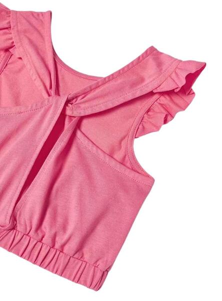 Descubre el conjunto de moda para niña de la marca MAYORAL Kids, ideal para un look veraniego y colorido. Esta encantadora pieza incluye un top sin mangas en un vibrante color rosa, diseñado con coquetas mangas con volantes que aportan un toque femenino y divertido. El top cuenta con un favorecedor corte elástico en la cintura, asegurando un ajuste cómodo y estilizado. La pieza inferior es un short con un alegre estampado floral que combina tonos rosados, verdes y amarillos. Su cintura alta cuenta con un lazo decorativo que añade un detalle encantador al diseño. El tejido ligero y suave garantiza comodidad durante todo el día, siendo perfecto para actividades diarias y ocasiones especiales. Este conjunto de MAYORAL es una opción versátil que refleja estilo y frescura, siendo un must-have en el guardarropa de cualquier niña. Combínalo con sandalias o zapatillas para completar el look ideal.