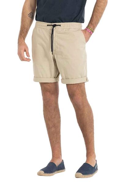 Bermuda El Pulpo. Modelo Bahamas. Color beige. Cintura elástica con cordones. Logo bordado en la parte de atrás. Bolsillos laterales. Estilo Jogging. Trabillas para cinturón. Bolsillos americanos.