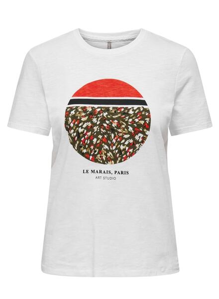 Camiseta Only. Modelo Philine. Color blanco. Manga corta. Cuello redondo. Estampado redondo en el pecho. Formato regular.
