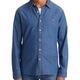 Camisa Levis. Modelo Battery. Color azul. Cierre con botones. Bajo redondeado. Manga larga. Hombros caídos. Tejido denim. Confeccionado con algodón. Slim fit. El modelo lleva la talla M.