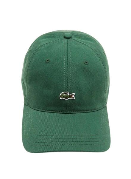 Gorra Lacoste. Color verde. Para hombre y mujer. Correa trasera ajustable con hebilla. Cinta de Lacoste en el interior. Cocodrilo bordado en la parte delantera. Tejido de sarga.