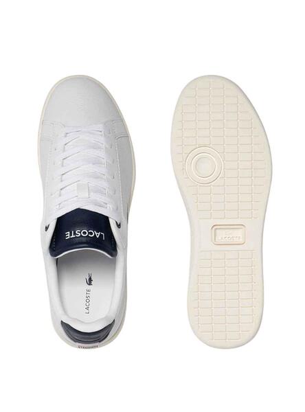 Zapatillas Lacoste. Modelo Carnaby Pro. Color blanco. Cierre con cordones. Logo lateral. Tejido granulado. Empeine de piel. Etiqueta tejida en el talón. Forro sintético. Suela de goma.