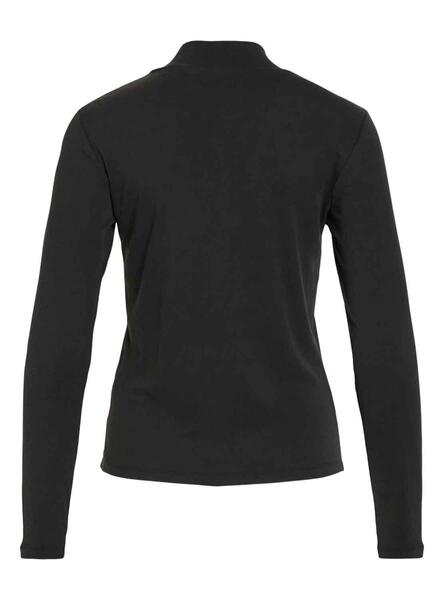 Camiseta Vila. color negro. Manga larga. Cuello alto. Tejido acanalado. Ajuste regular. La modelo lleva la talla S.