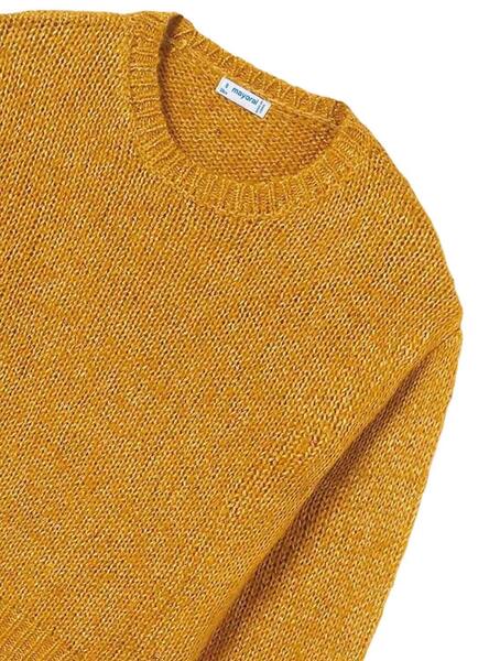 Jersey Mayoral. Modelo Fantasia. Color mostaza. Cuello, puños y bajo elástico. Tejido de punto trenzado. Hombros caídos.