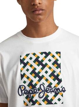 Camiseta Pepe Jeans. Modelo Warren. Color blanco. Manga corta. Cuello redondo. Estampado geométrico en el pecho. Tejido suave. Regular fit. Acabado doble pespunte.