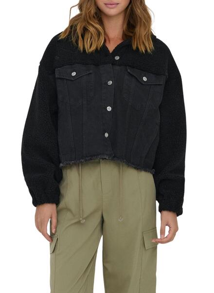 Cazadora vaquera Only. Modelo Bella. Mangas y hombros con tejido peluche. Cierre con botones. Bolsillos en el pecho.