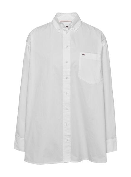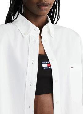 Camisa Tommy Jeans Popelín Oversized Blanco Mujer