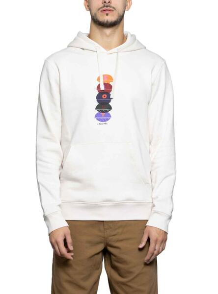 Sudadera edición limitada ilustradora Blanca Millán. Color beige. Para hombre y mujer. Capucha forrada ajustable con cordón plano. Bolsillo frontal canguro. Ilustración en parte frontal y trasera. Terminaciones acanaladas. Pespunte decorativo en costuras.
