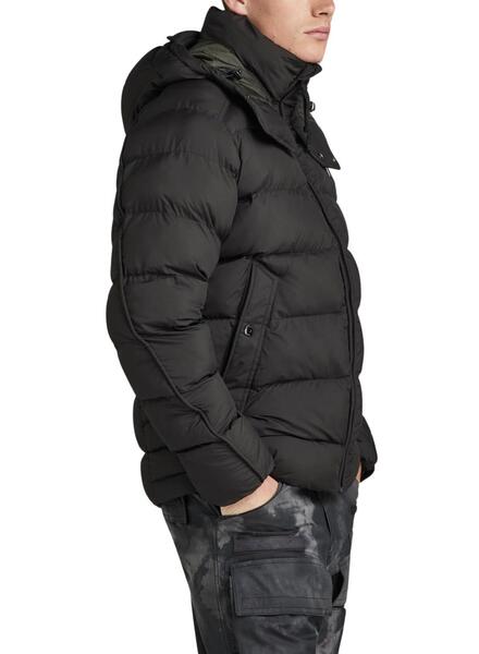 Chaqueta G-Star. Modelo Whistler. Color negro. Cierre con cremallera. Costuras decorativas. Tejido acolchado. Capucha ajustable con goma elástica. Parche en el brazo. Logo metálico en el pecho. Bolsillos con broche.