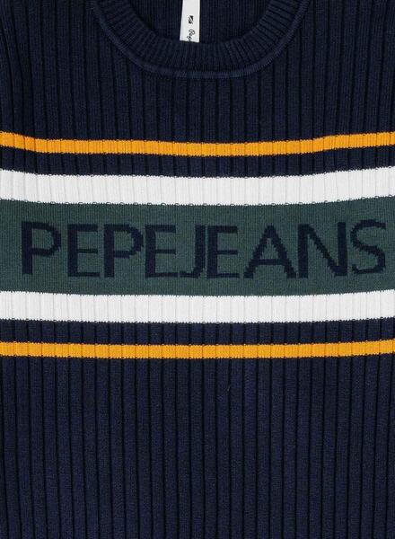 Vestido Pepe Jeans. Modelo Remi Dulwich. Color azul marino. Cuello redondo elástico. Manga larga. Logo en el pecho. Tejido elástico con cananlé. Hombros caídos.