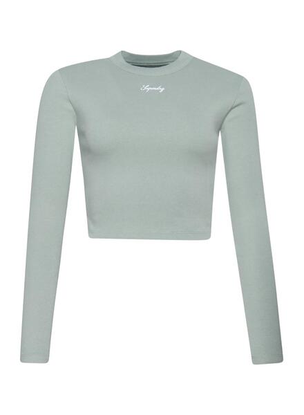 Top ajustado Superdry. Modelo Rib. Manga larga. Cuello redondo. Logo bordado en el pecho. Ajustado al cuerpo. Corte por el ombligo. Detalles distintivos. La modelo lleva la talla S.