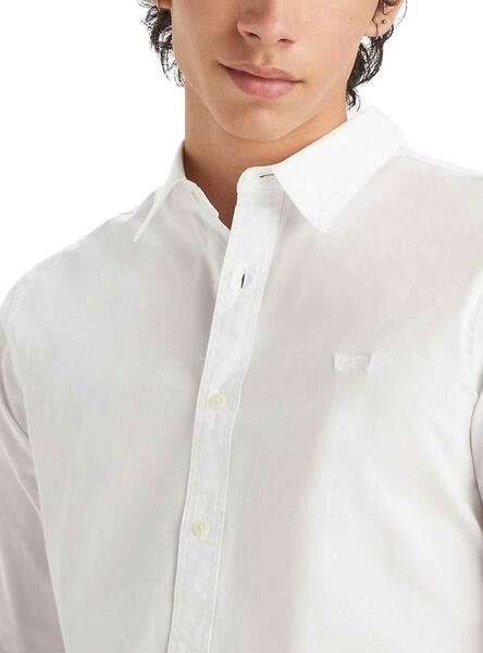 Camisa Levis. Color blanco. Manga larga. Corte slim. Cierre delantero con botones. Logo en el pecho. El modelo lleva la talla M.